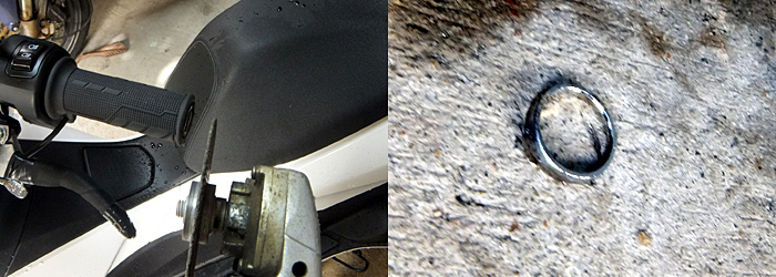 PCXオーナー達のブログの情報通り、少し加工が必要な部分がある。接触する部分に赤マジックで印をつけ高速カッターで削る。